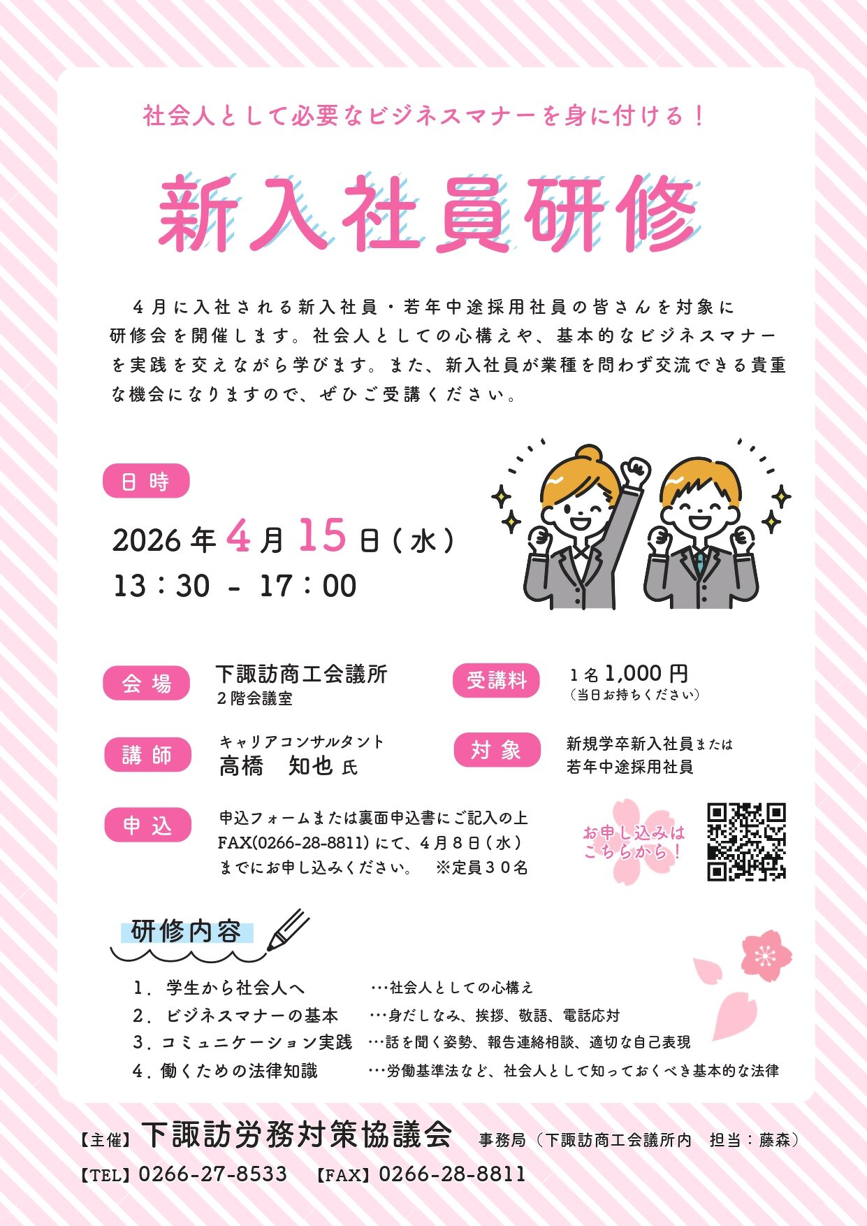 セミナー 4/15 社会人として必要なビジネスマナーを学ぶ!新入社員研修のお知らせ