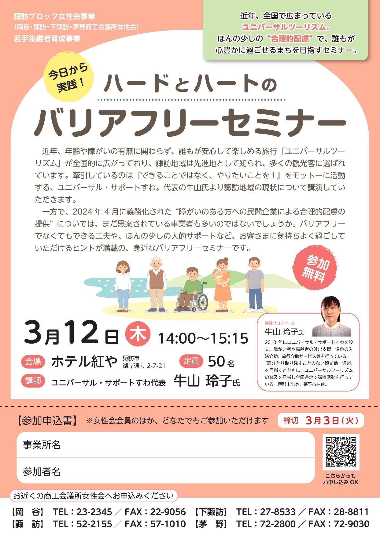 近年、年齢や障がいの有無に関わらず、誰もが安心して楽しめる旅行「ユニバーサルツーリズム」が全国的に広がっており、諏訪地域は先進地として知られ、多くの観光客に選ばれています。牽引しているのは『できることではなく、やりたいことを!』をモットーに活動する、ユニバーサル・サポートすわ。代表の牛山氏より諏訪地域の現状について講演していただきます。